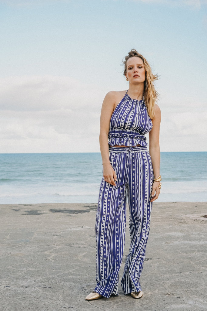 Horizon Blue and Orange Farniente Print Slit Skirt