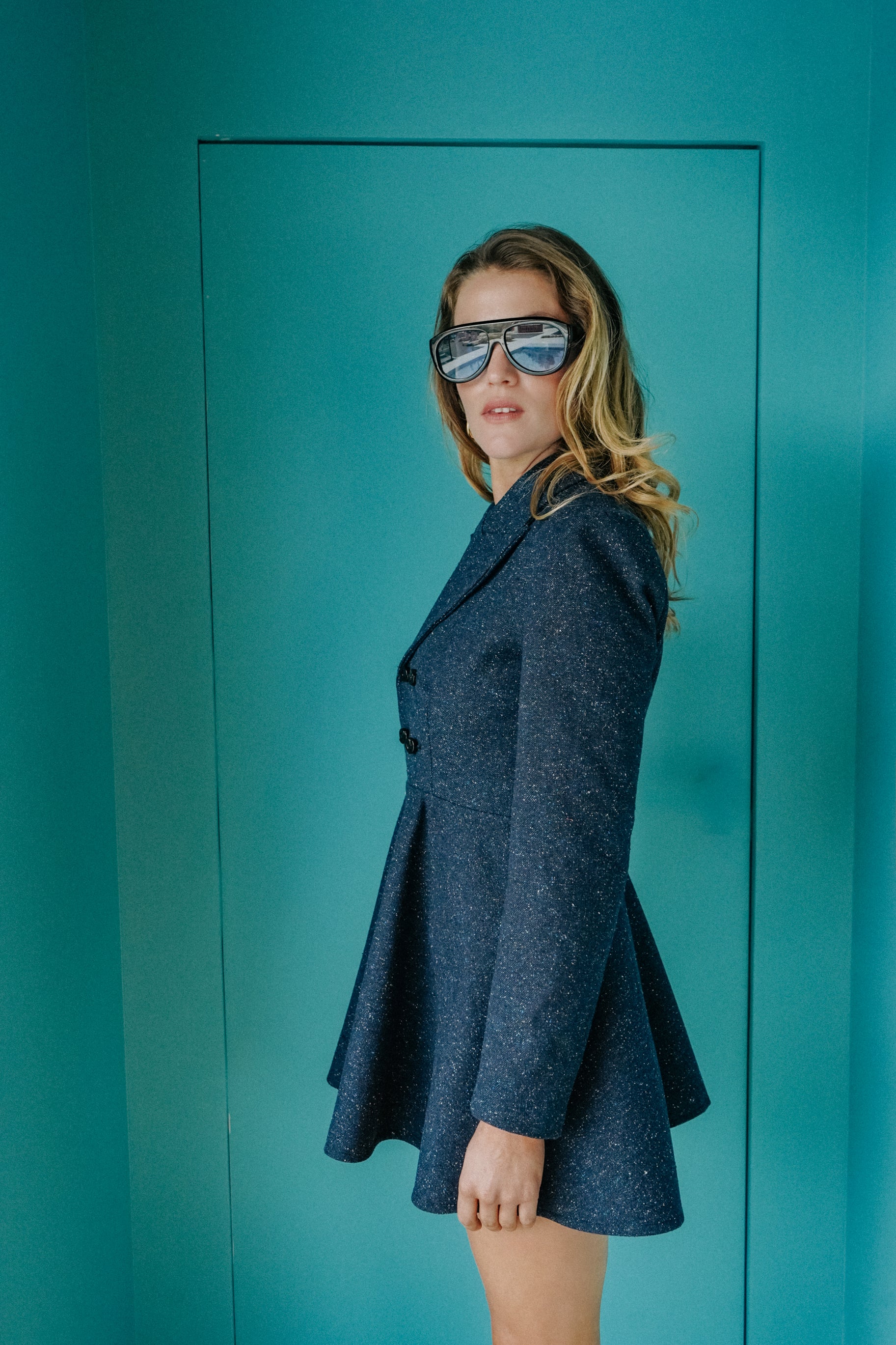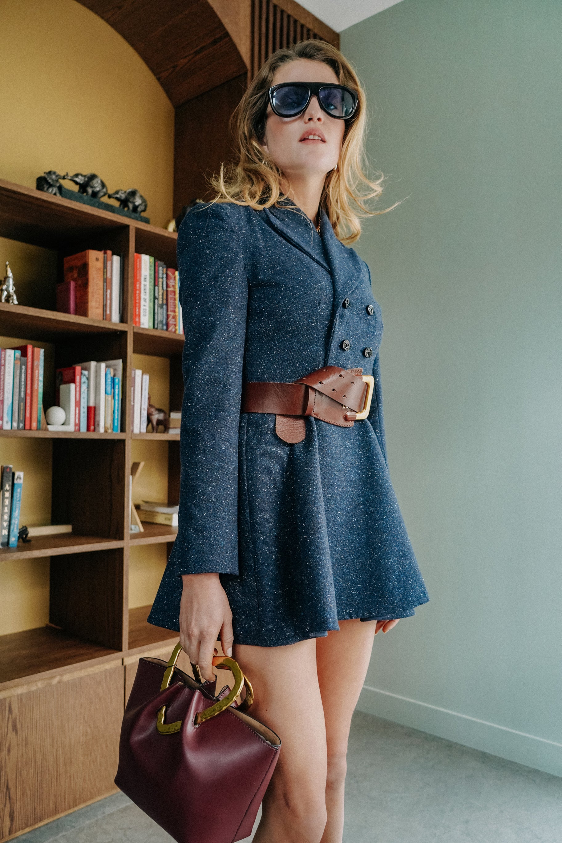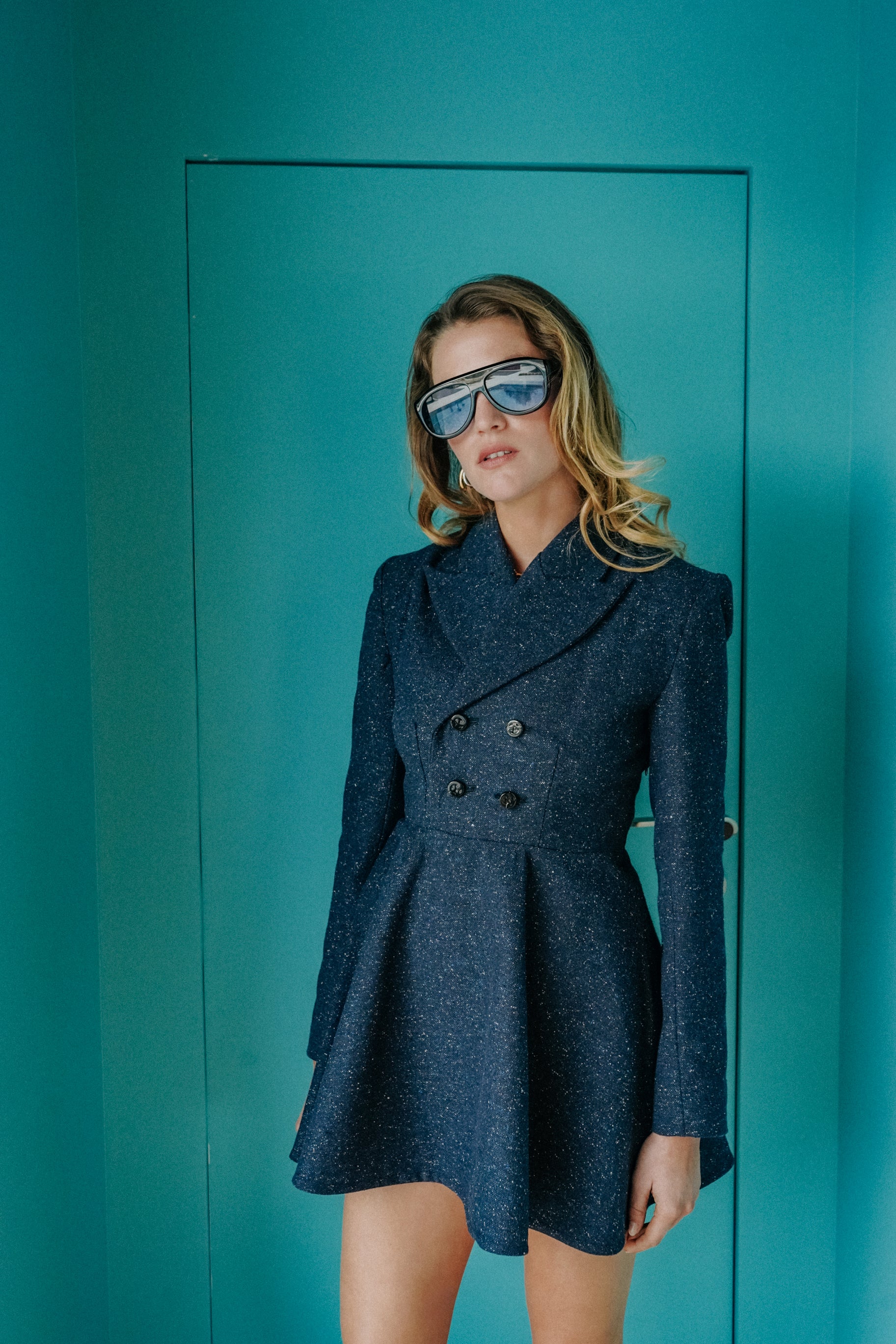 Wear this tailored dress as an elegant dress with discreet shorts or tights for added comfort, or leave it slightly open and pair it with pants to create a dynamic, modern look that transitions effortlessly from work to evening.